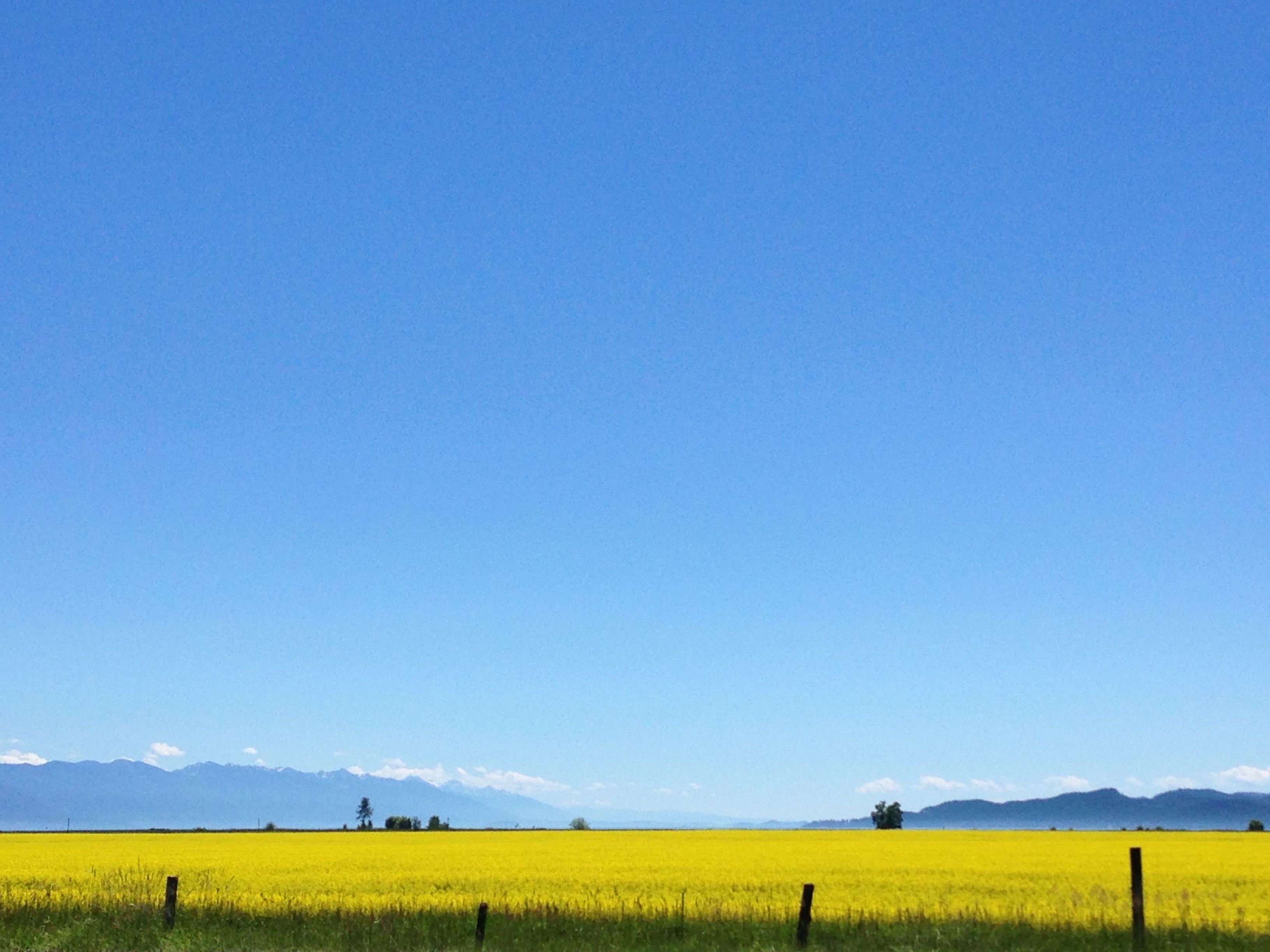 As I drive through the valley and take in these canola fields, my eye is constantly searching for that unique yellow-green color to appear in something else. The YIELD signs are too orange, the Subway signs too yellow, and then I spot a sign for Applebees. It’s the exact same color as the canola fields. (The red apple on that green makes such a pleasing composition.) Applebees. A restaurant chain in which they don’t make the food in their own kitchens but microwave pre-made baggies of food which have been delivered by trucks to their loading docks. Fitting, that their green-yellow logo is the exact color of the engineered crop, canola. These are signs of our times.