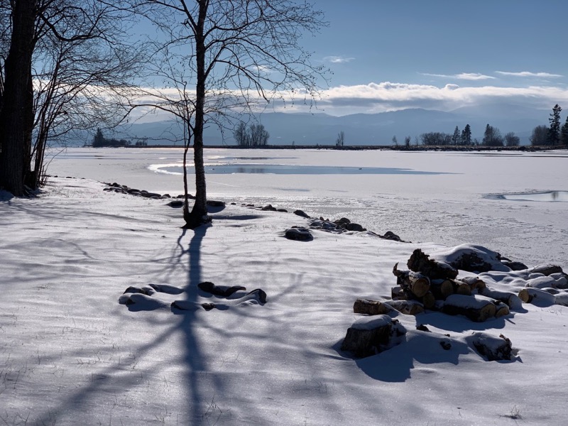 It’s been brutal this past week. Lake fog shrouds the house all morning long. Chunks of ice clack against each other at water’s edge, and an occasional ice floe drifts by from the river channel, as hungry Bald Eagles fly in and out of the fog. As with most things in life, you have to keep telling yourself, “At least it’s not as bad as, say, White Sulpher Springs, MT at -44 degrees, or -33 degrees in Great Falls, or our poor Billings family. Our sanity has been salvaged on most of these extreme days by the blazing sunshine late in the afternoon, and by gorgeous sharp and crisp sunsets as the mercury plummets in the descending night. Any evening now, the new fingernail moon will greet us in the west, just as the sun leaves the sky.